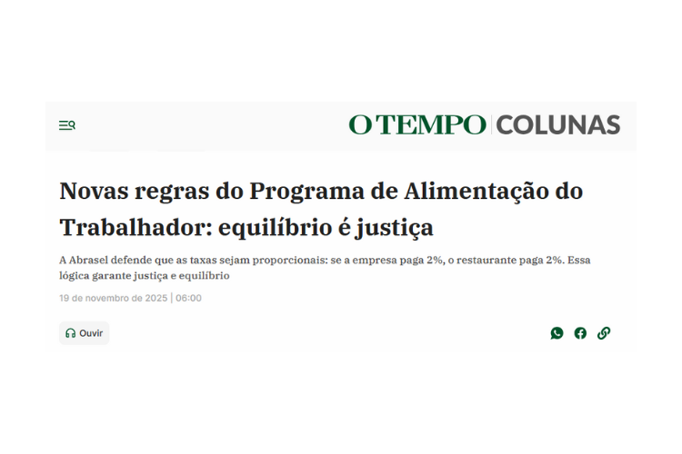 Em artigo publicado em O Tempo, o presidente-executivo da Abrasel, Paulo Solmucci Jr., critica o decreto que altera as taxas do Programa de Alimentação do Trabalhador (PAT). Segundo ele, a medida ignora o princípio original da lei e transfere todo o custo da taxa de 3,6% para os restaurantes, sem cobrança equivalente das empresas que oferecem o benefício aos trabalhadores.